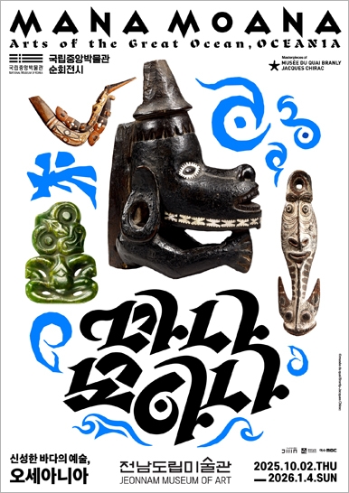 전남도립미술관은《마나 모아나–신성한 바다의 예술, 오세아니아》국립중앙박물관 순회전을 2025년 10월 2일부터 2026년 1월 4일 까지 개최합니다. 본 전시는 프랑스 케브랑리-자크시라크 박물관(Musée du quai Branly – Jacques Chirac)과 한국 국립중앙박물관이 공동으로 기획한 것으로, 케브랑리-자크시라크 박물관이 소장한 18세기부터 20세기까지의 오세아니아 유물 171점과 현대 오세아니아 작가들의 작품 8점을 선보입니다.
