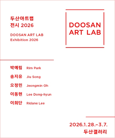 ‘두산아트랩’은 두산아트센터가 시각 예술과 공연 예술 부문의 신진 예술가를 발굴하고 지원하기 위해 2010년부터 진행해 온 프로그램으로, 시각 분야에서는 35세 이하의 작가 다섯 명을 공모로 선정해 단체전의 형태로 소개해오고 있다. 이번 《두산아트랩 전시 2026》에는 지난해 공모를 통해 선정한 박예림, 송지유, 오정민, 이동현, 이희단이 참여한다.