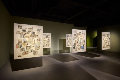 시작점의 풍경, 건축용 트레이싱지에 연필, 펜 드로잉 및 프로젝션 맵핑, 500 x 300cm, 2017
