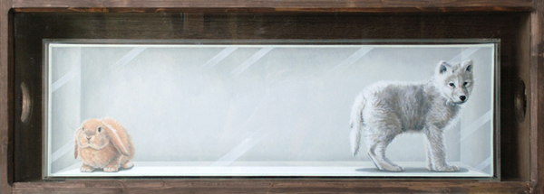 Box no. 42, Homo homini lupus- Thomas Hobbes, Oil on canvas, acryl case, wood cabinet , 33x91x16.8 cm , 2010, 갤러리엠 소장