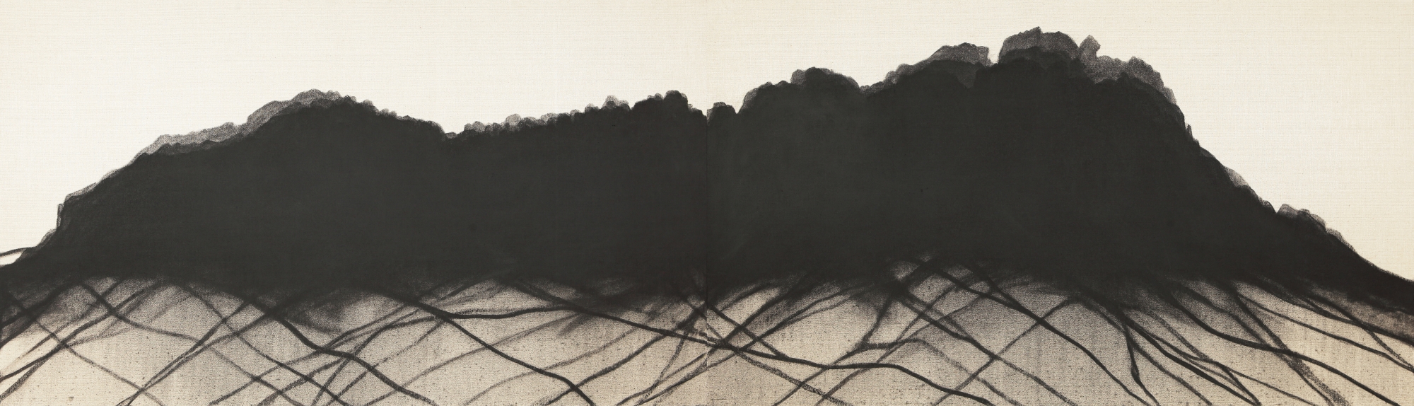 올산바위_길위에서_ charcoal on canvas, 112x388cm, 2018