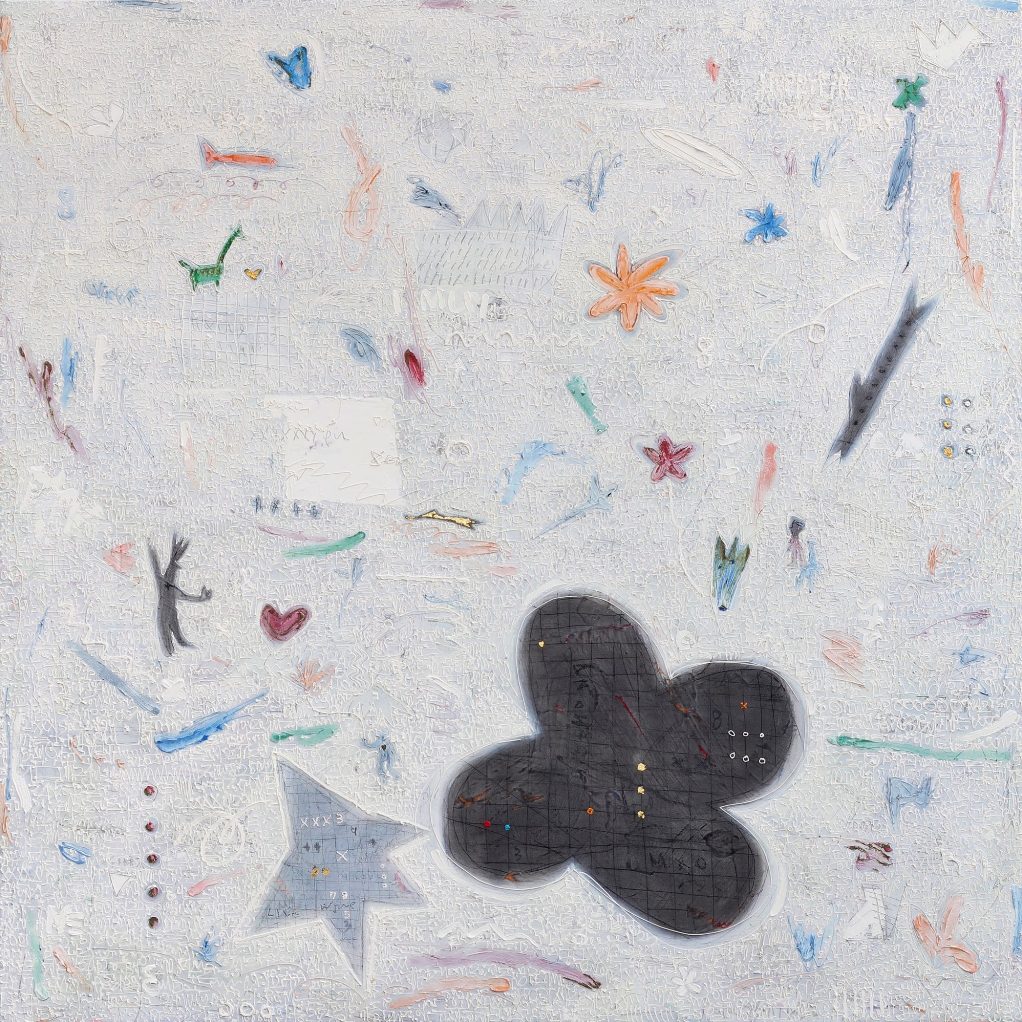 Acrylic, oil, pencil on canvas, 100x100cm, 2025