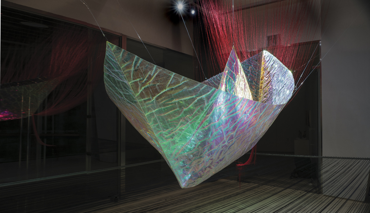 無와 有의 경계에서, 가변설치, Plastic tape, sewing, 오로라지, 2025