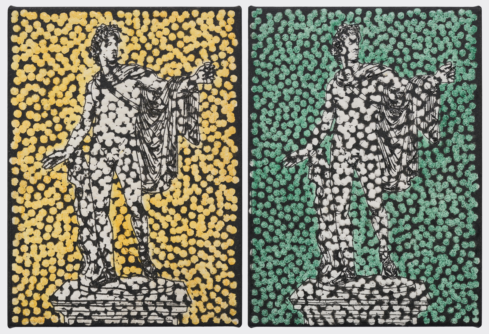 Untitled (SSWWMD), 2025, Oil, acrylic and archival glue on paper mounted to canvas 61.5 x 46 x 3.5 cm (each) Courtesy of the artist and Kukje Gallery 사진: Joshua Morris 이미지 제공: 국제갤러리