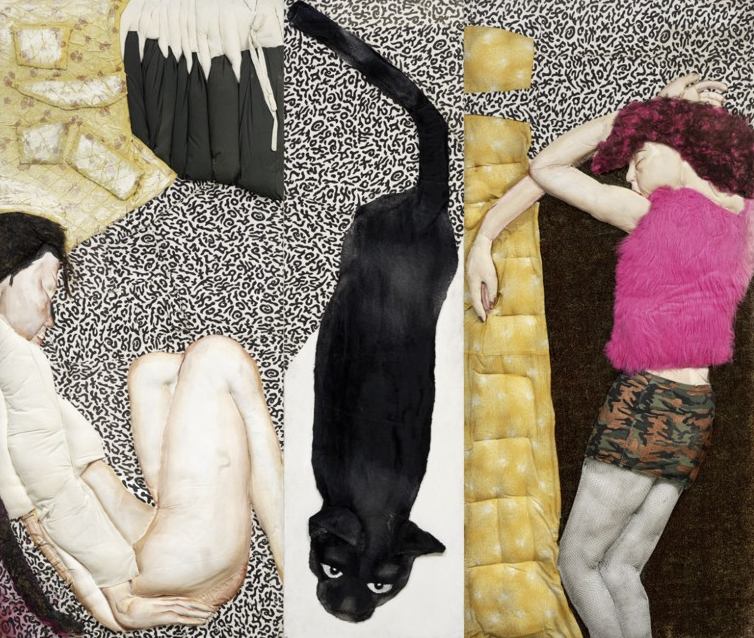 좌) <웅크린 표범 여자> 2022, 캔버스에 아크릴, 112.1×145.5cm, 우) <집 나온 여자>, 1996, 캔버스에 아크릴, 60.6×72.7cm