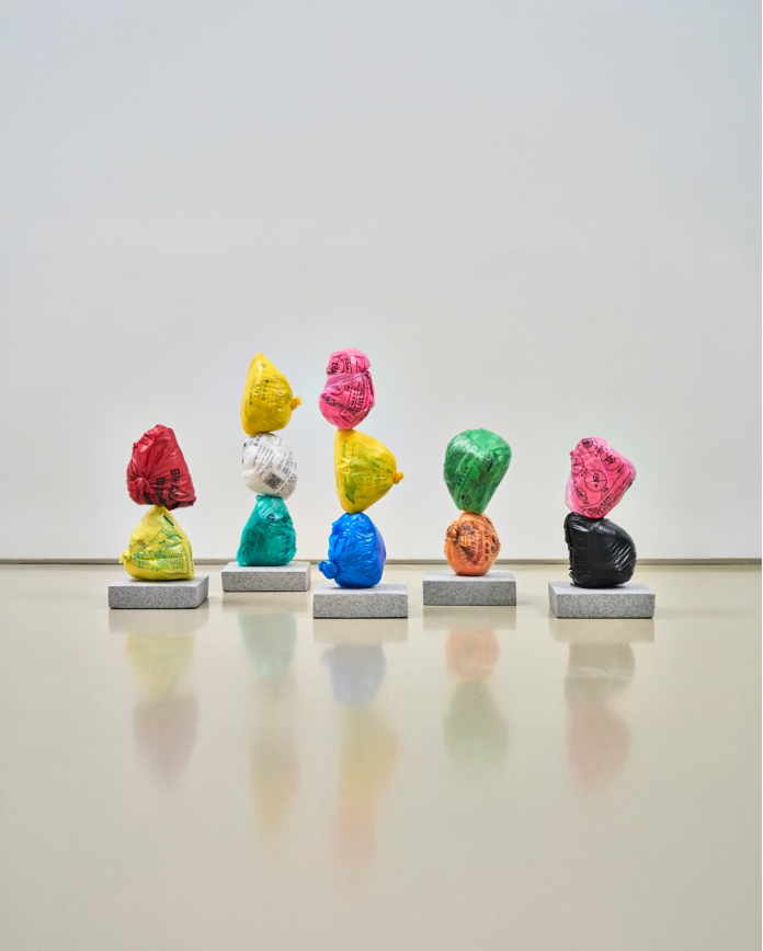 Small Mountain Series, 2025, trash in a garbage bag, styrofoam, various size