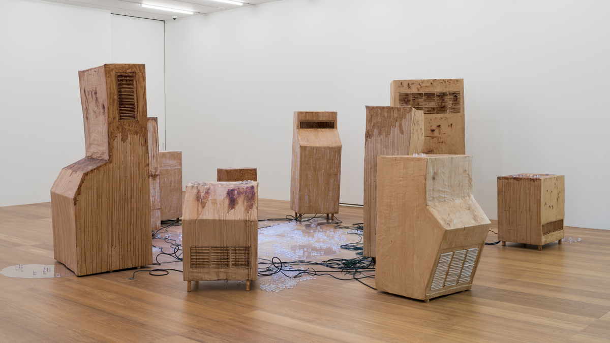 SERV-ICE, 2025, 종이, 모터, 각목, 커피, 레진, 290x490x195cm, 18분 40초
