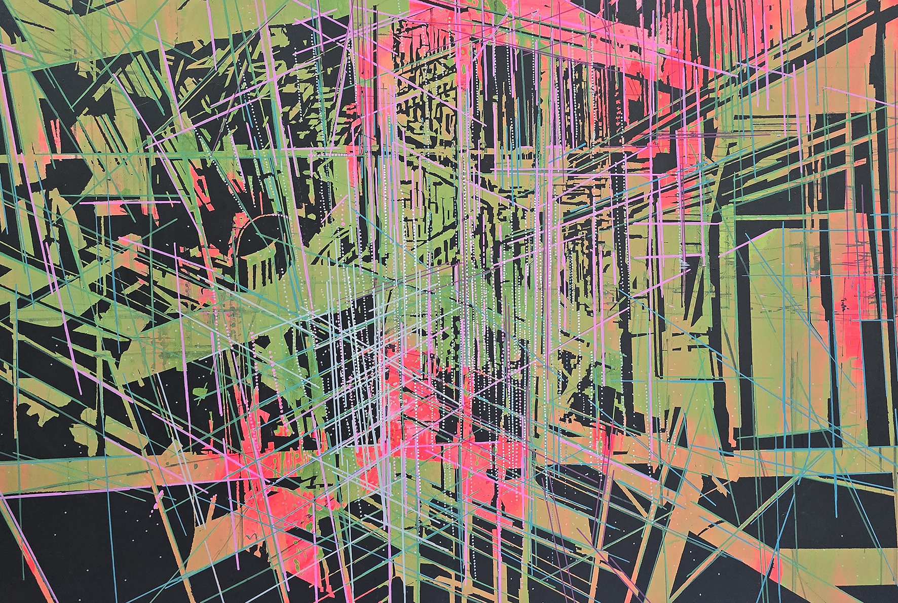 Jig V, Mixed media on canvas, 112.1x193.9cm, 2018