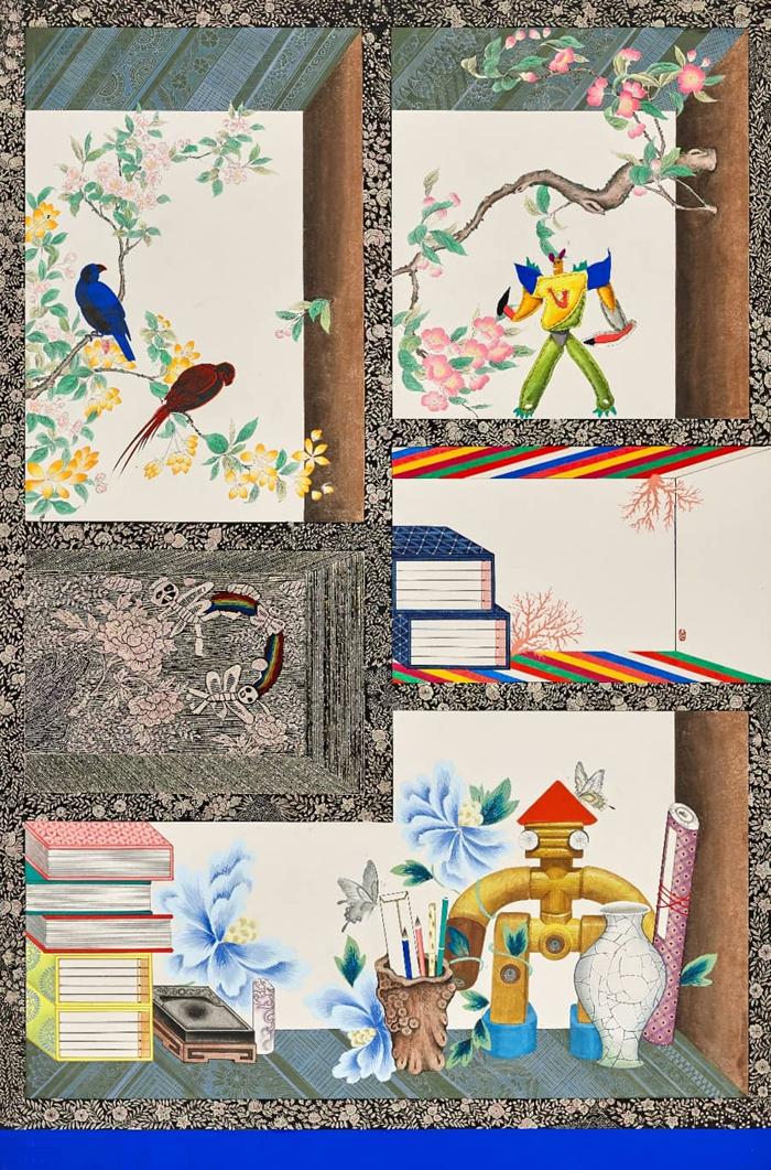 신선놀음_봉황 02, 장지에 채색, 129 x 90 cm