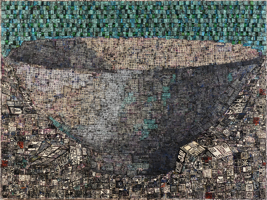 Condensation 응집 029, 132x98.5cm Mixed media(Korean Stamps) on Panel 2022