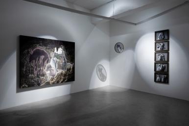 Fountain, 2023, Black ink, white powder, tempera and gouache on Korean paper mounted on wood, 258 x 206 cm