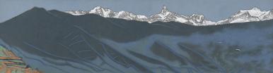 Himalaya2020~구름위에 시선, 155x570cm, 한지,먹,천연혼합채색, 2020