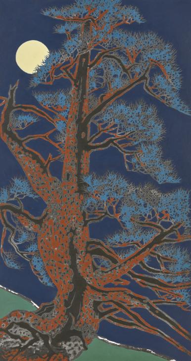 거제해송(巨濟海松), 149x79cm, 한지,먹,천연혼합채색, 2020