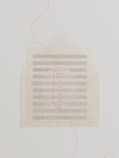 편지, 2024, 혼합기법 노밤, 한지, 금방, 실, 47×40cm