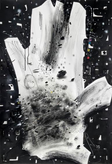 My Story Is Mystery, 2019 Lacquer, acrylic spray paint, paper 62.4 x 82.4 x 4.2 cm