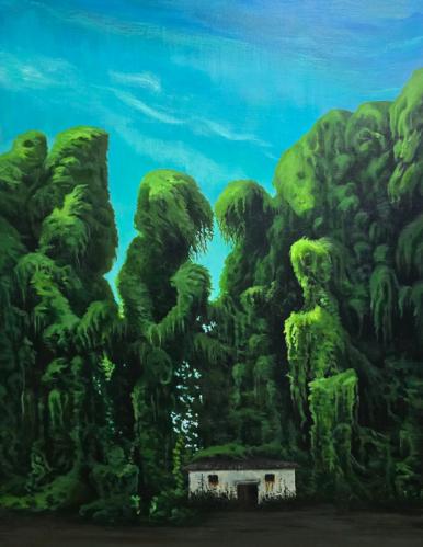 검은 숲 속, 2017, 캔버스에 아크릴채색, 290.9x197cm