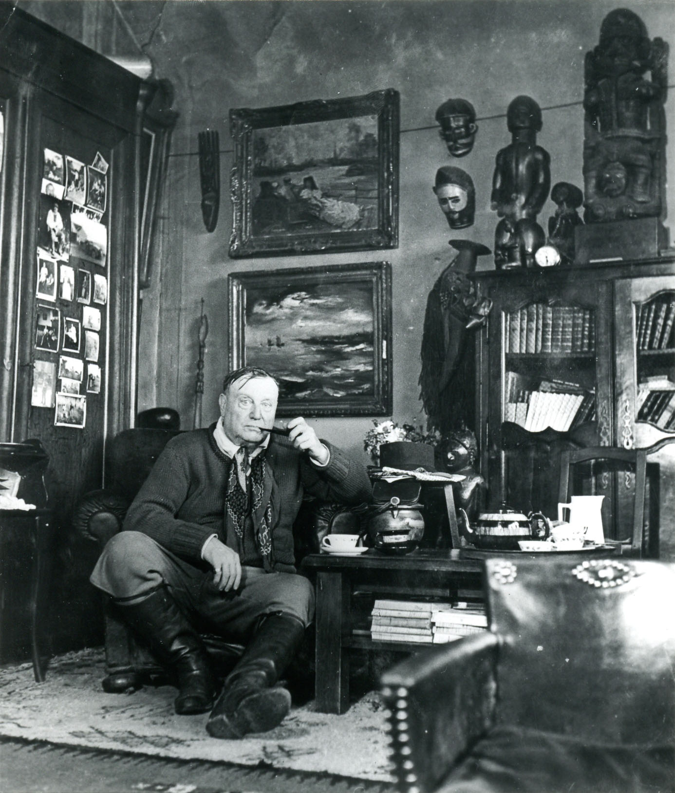 툴리에르(Tourillière) 아뜰리에서 앉아있는 블라맹크, 1948-50년 경