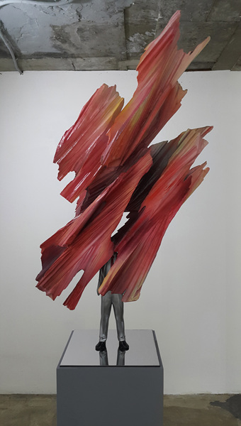 Over burden, 레진에 아크릴페인트, 스테인리스, 120×80×40cm, 2017