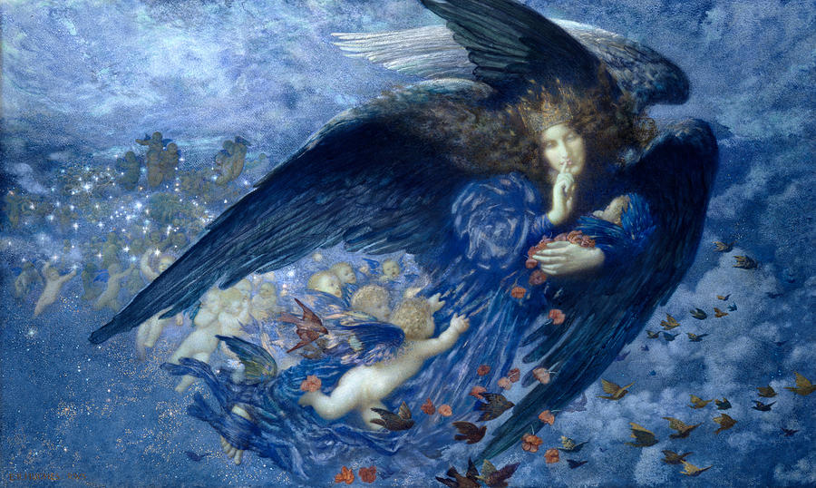 Night With Her Train Of Stars is a painting by Edward Robert Hughes which was uploaded on September 12th, 2014.