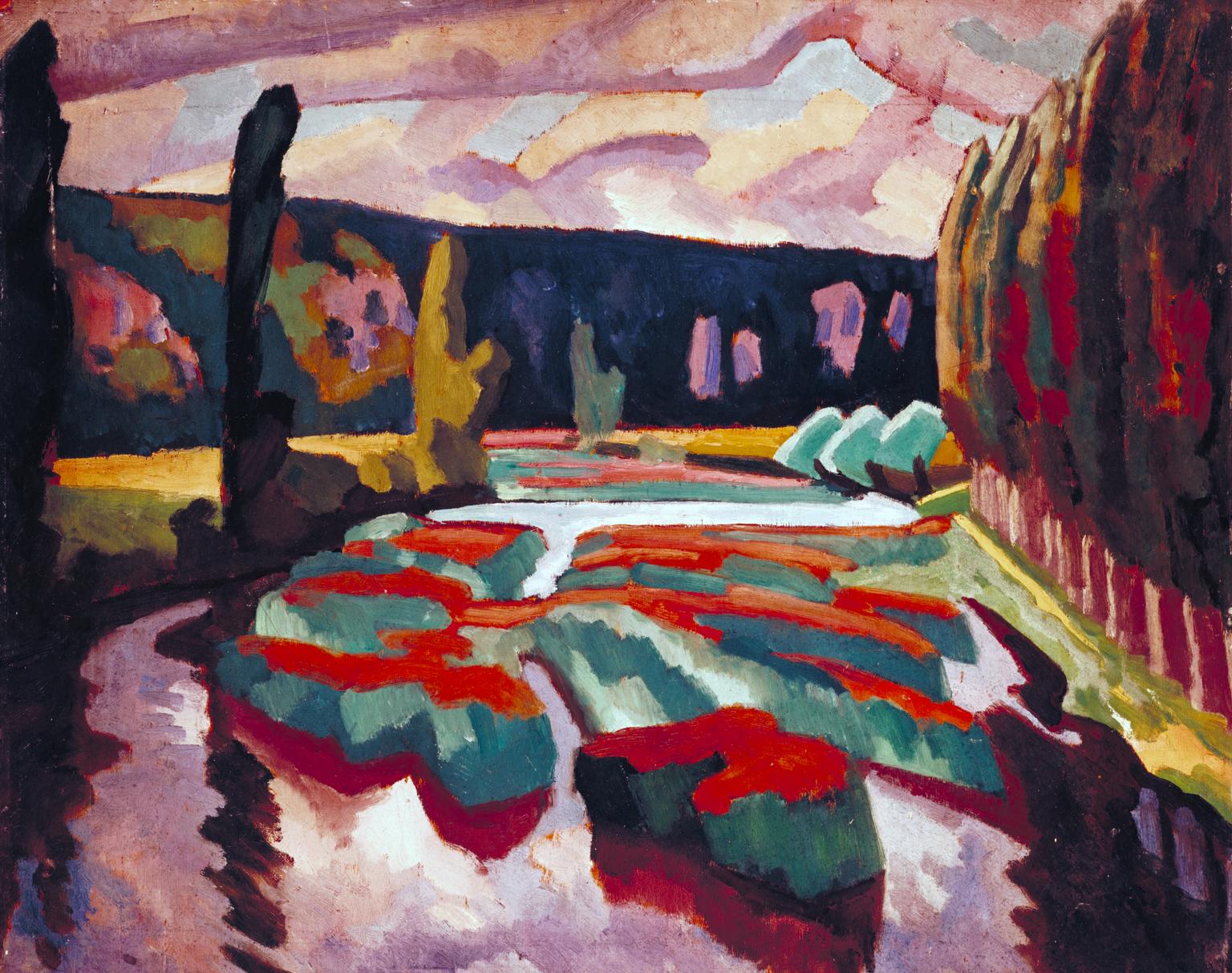 River with Poplars c.1912, Oil paint on wood, 565 x 708 mm, Tate