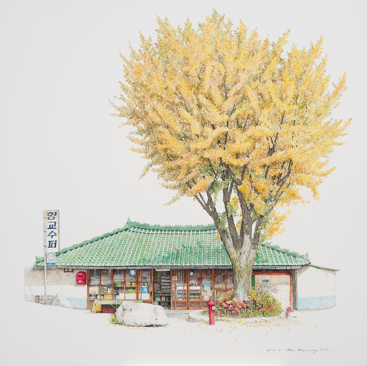향교슈퍼, with a pen, use the acrylic ink on paper, 122 x 122 cm, 2018