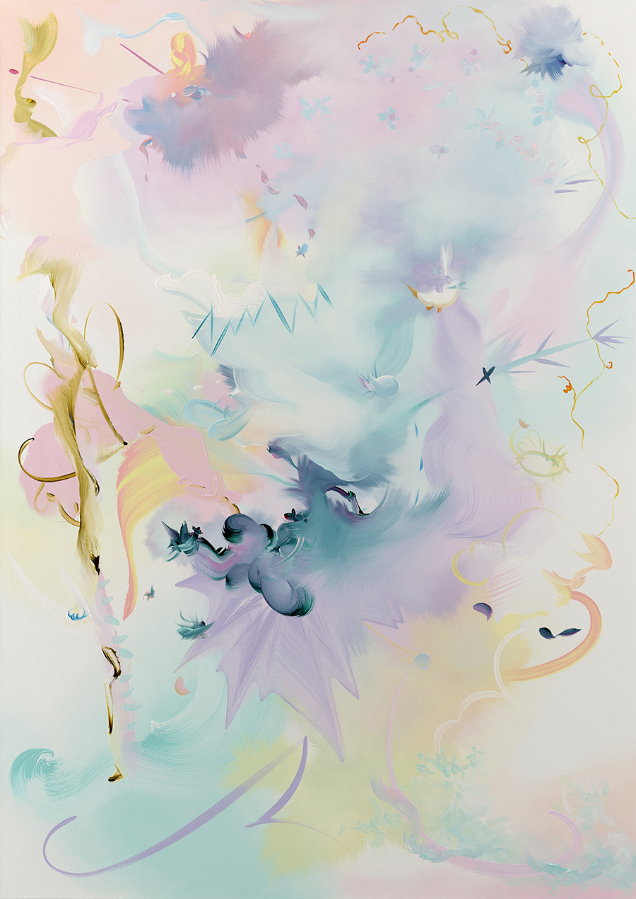 잠자는 숲속의 공주는 내 귀에 대고 속삭인다, Sleeping Beauty will hum about mine ears, 2017, Oil on canvas, 183x129.5cm_image copyright Fiona Rae