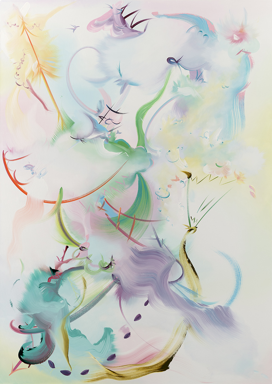 잠자는 숲속의 공주는 내 귀에 대고 속삭인다, Sleeping Beauty will hum about mine ears, 2017, Oil on canvas, 183x129.5cm_image copyright Fiona Rae