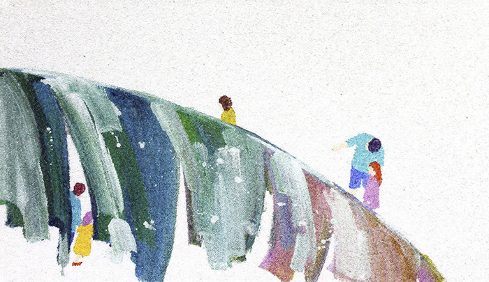 더할나위없다-하루, 유리구슬, 혼합재료, 70×122cm, 2019