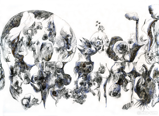 삶과 죽음의 경계, 종이에 펜, 211cm X 35cm, 2010