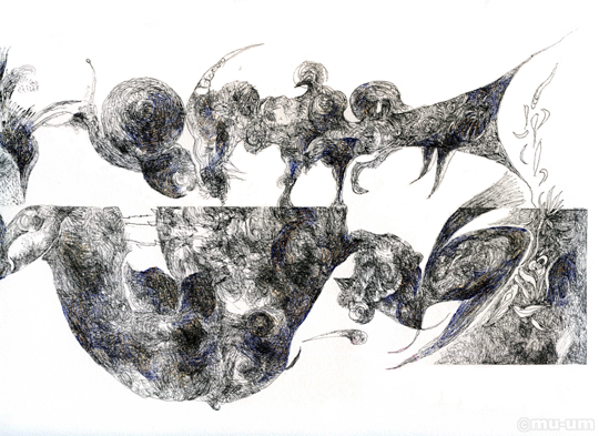 삶과 죽음의 경계, 종이에 펜, 211cm X 35cm, 2010