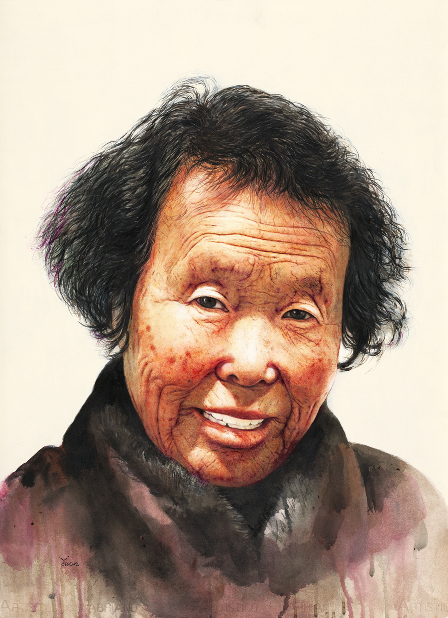 Mother series: 마곡사 100세 할아버지., mix media on cotton paper, 45*55, 2019