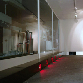 Nr.1_탈-코드화 된 빛(쿤스트독 프로젝트 스페이스)(부분), 1 음절 RG LED 싸인패널 6개, 오브제(거울) 설치, 580x280x225cm, 2009