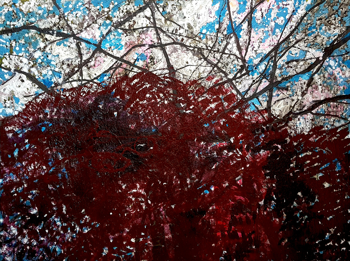 Blossom, mixmedia on canvas, 97x130cm, 2021