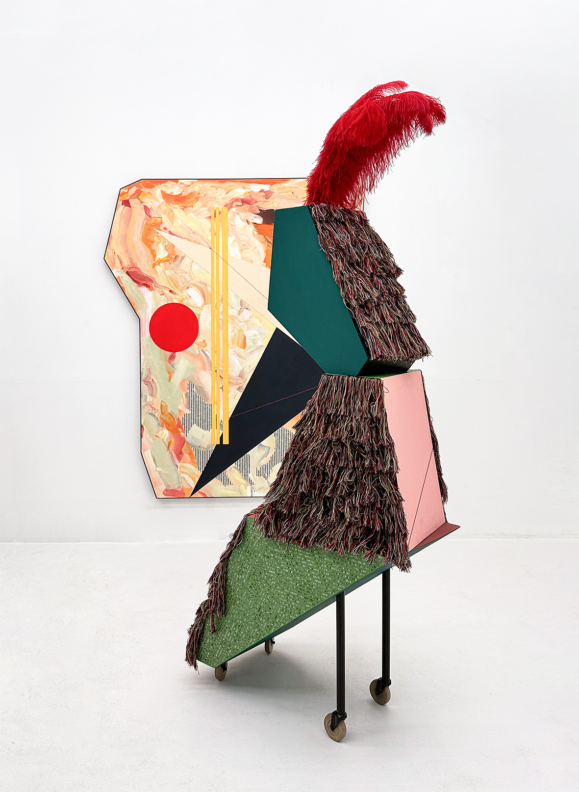 • 둥근 망치와 핑크색 항아리 Round hammer and pink bottle, Material / Birch plywood, PNY Stone, Pure cotton, Jagae, Acrylic_ Size / 1135w, 1787h, 50d mm _ 2022