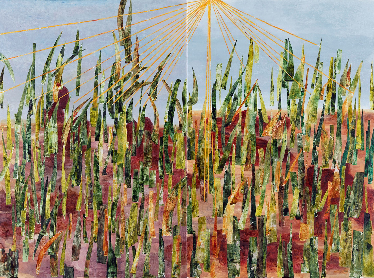 둘, 하나가 되는 조각, 장지에 아크릴, 과슈, 분채, 192x260cm, 2023