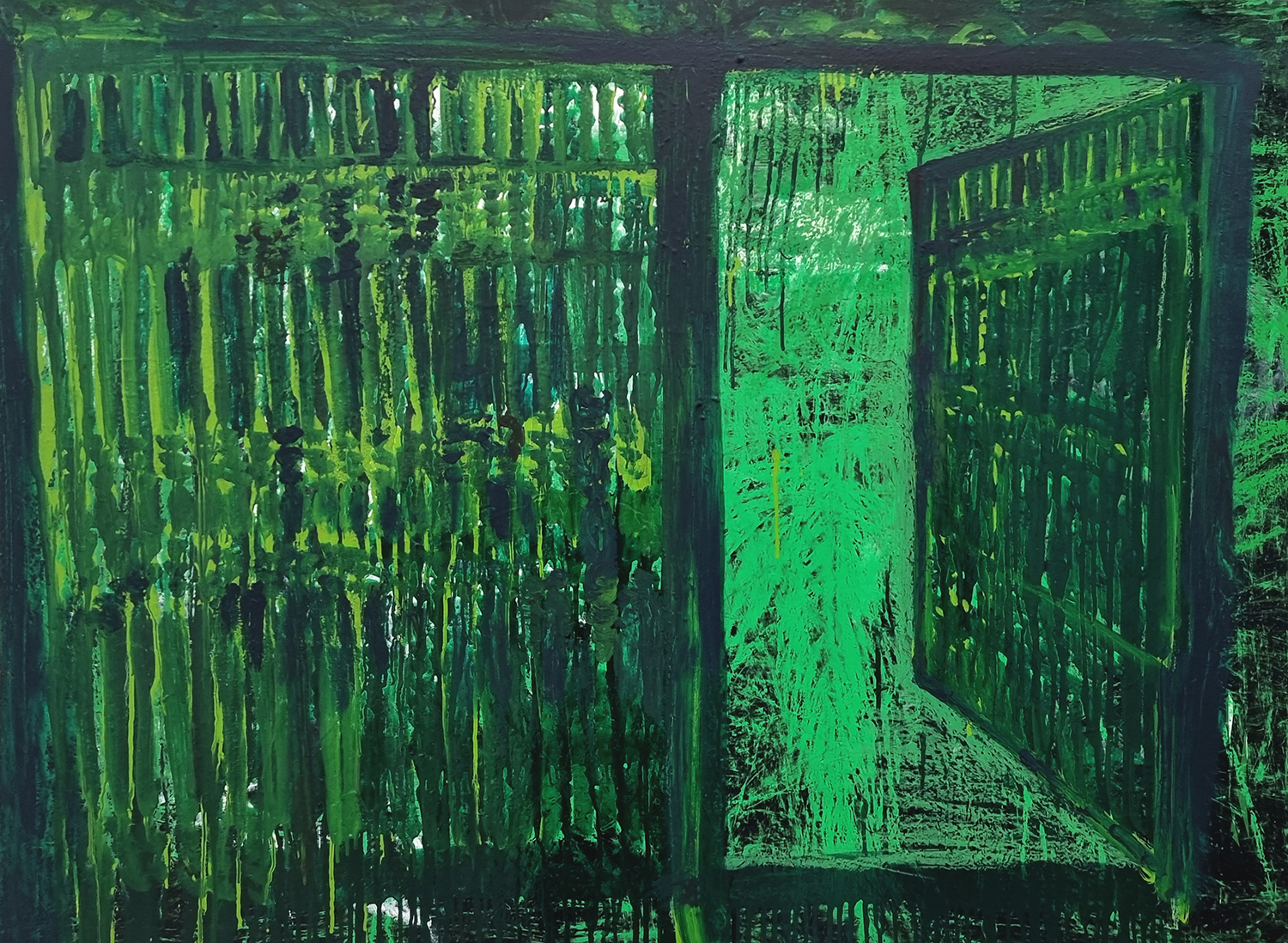 초록대문, mix media on panel, 117 x 91cm, 2024