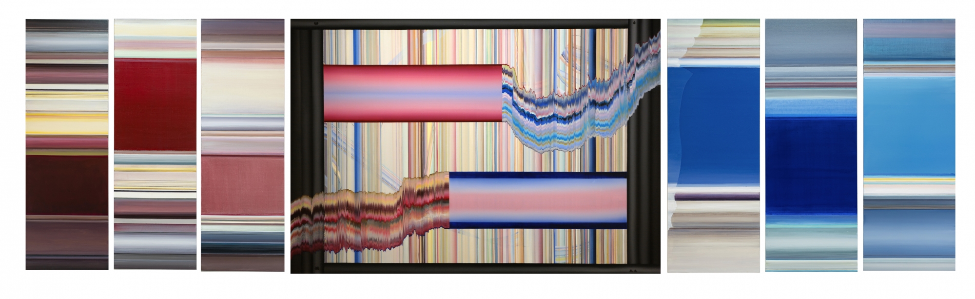 관객들(마린시티1로 51-2 , 필동로8길 22-2 , 금남리 333-2, 남부순환로2406-1), 캔버스에 아크릴과 조향 아크릴,110 x 515cm (1pcs 110 x 40cm), 2025