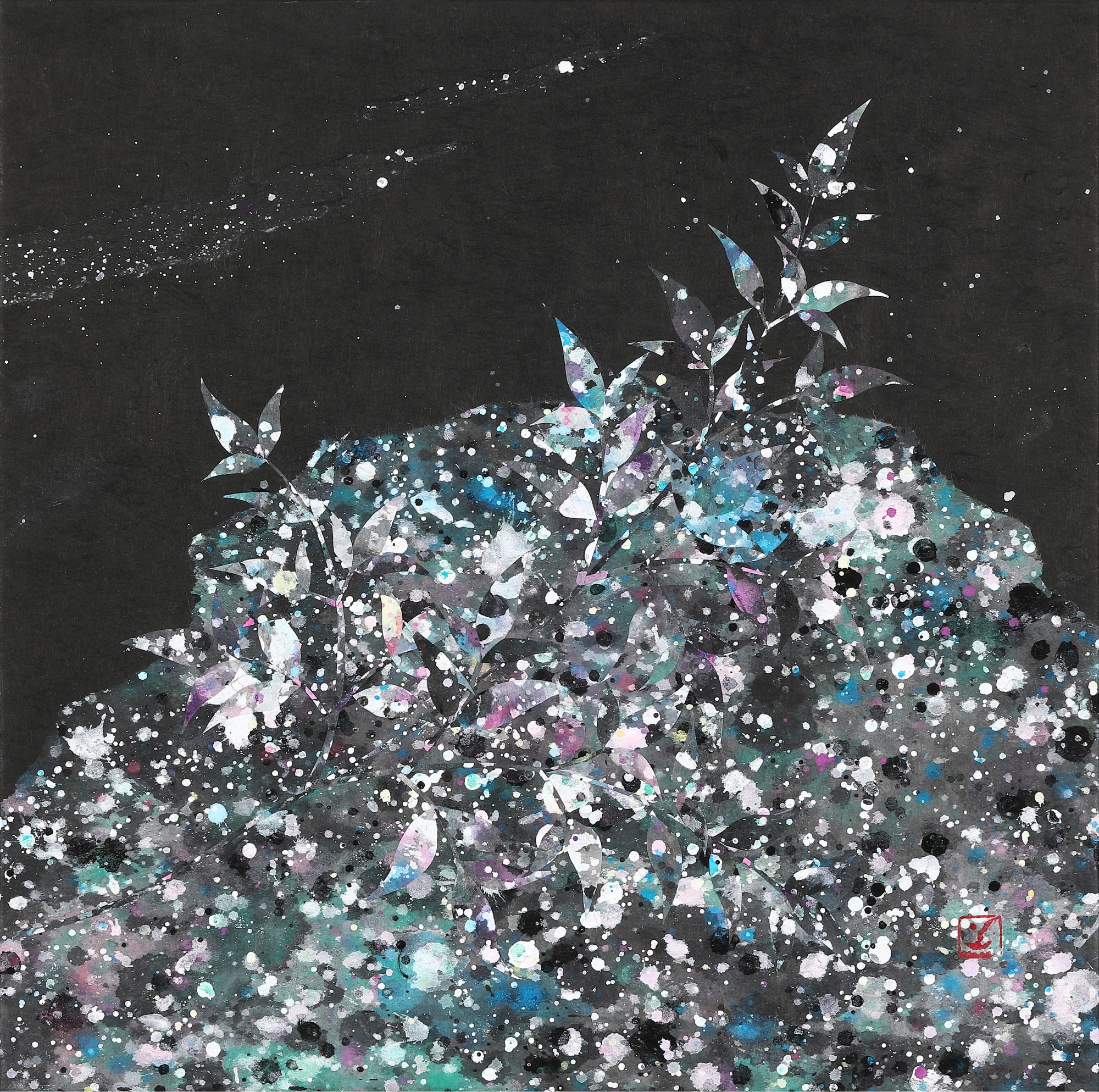 바람숲, 장지에 채색한지, 안료, 30x30,4cm, 2025