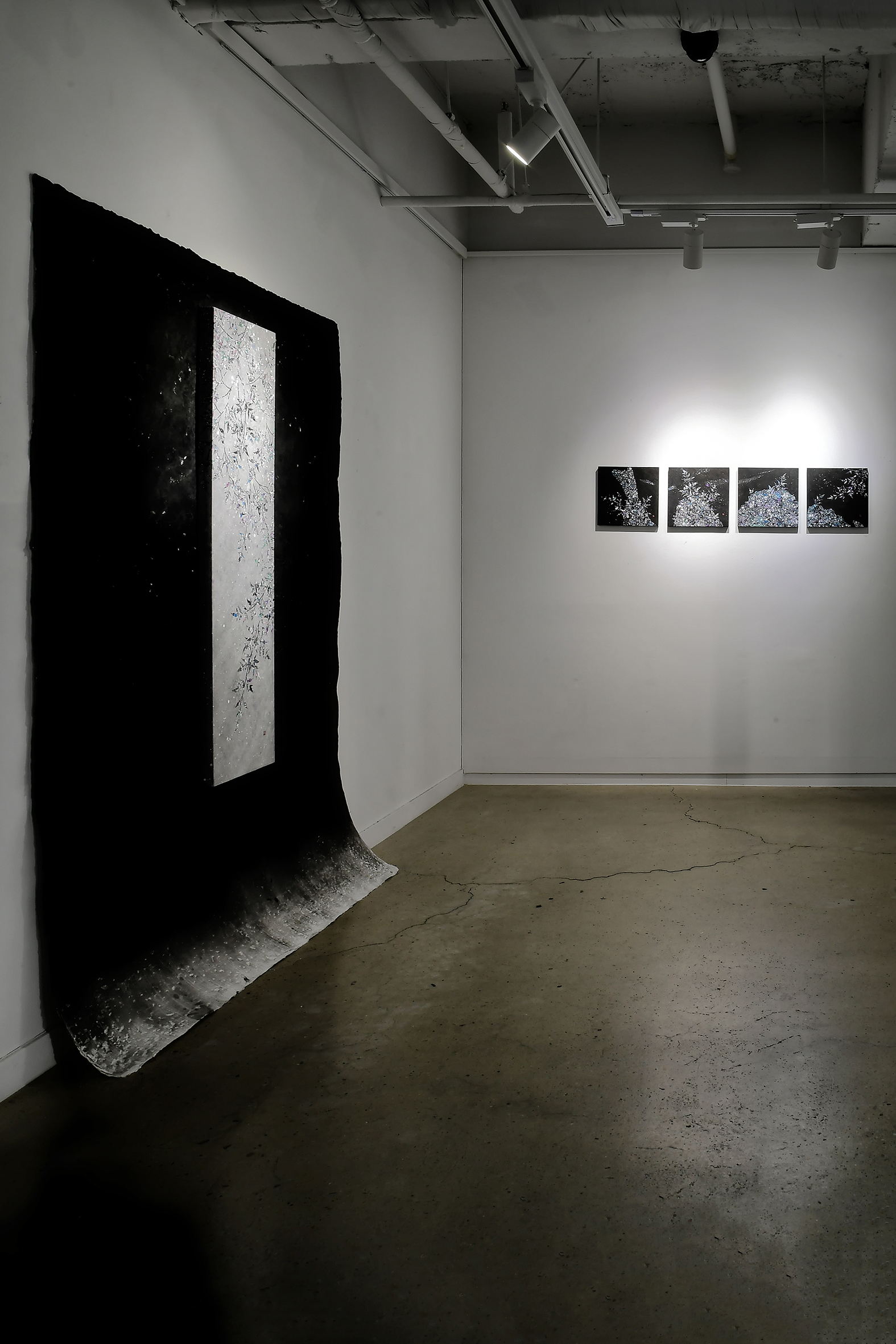 고요의 온도, 장지에 채색한지, 안료, 각150x20cm,150x10cm, 가변설치,2025