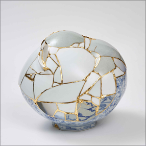 <번역된 도자기>,, 2022, 도자기 조각, 에폭시, 24k 금박, 125x74x65cm