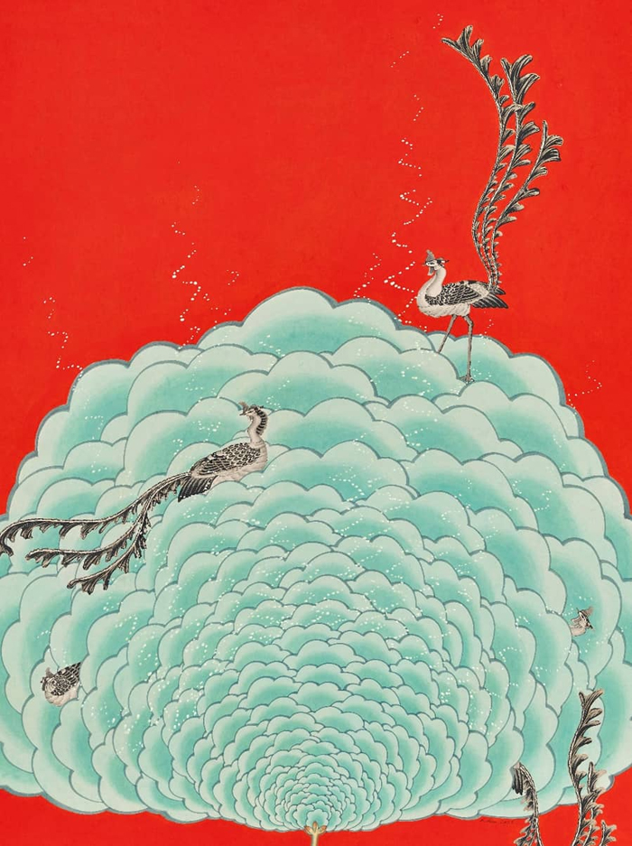 신선놀음_봉황 02, 장지에 채색, 129 x 90 cm