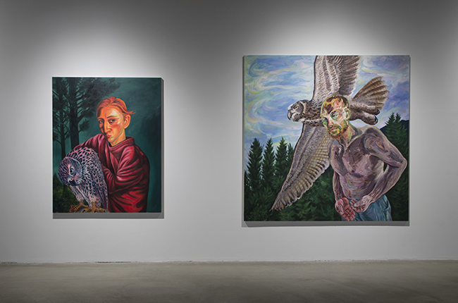 좌-앵무조개와 함께, 2024, Oil on canvas, 116.8 x 91cm , 우-비를 태워라 009, 2024, Oil on canvas, 116.8 x 91cm
