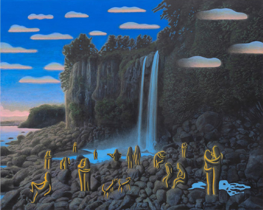 We Held Each Other Beneath the Waterfall at Dawn, 2025-2026, acrylic and acrylic gouache on canvas, 130.5 × 162.5 cm
