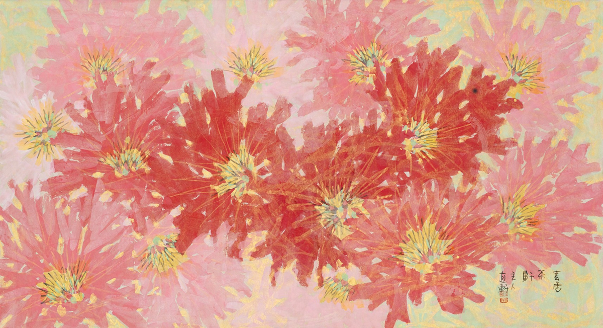 모란, 2021-2023, 한지에 수묵채색, 금니, 65x119cm