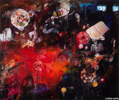 회식relay-4차, mixed media on panel, 110x130.3cm, 2010