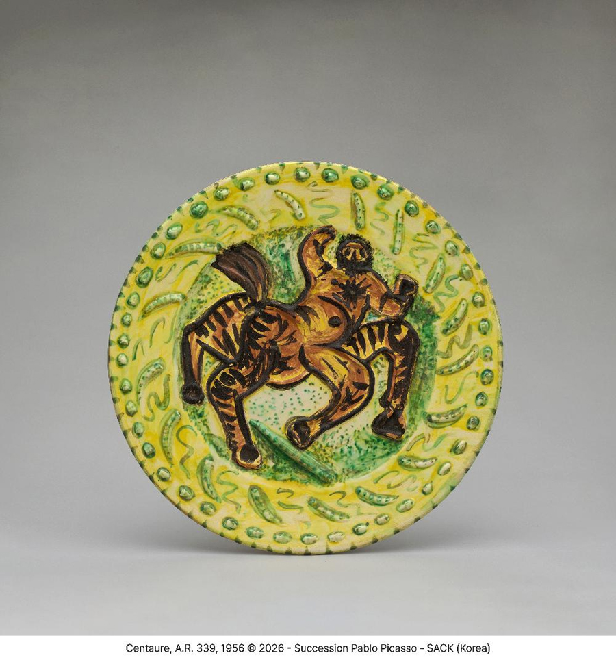 켄타우로스, A.R. 339, 1956, 백토, 화장토 장식, 부분 유약 시유, 41×41×4cm(자료제공: 국립현대미술관)