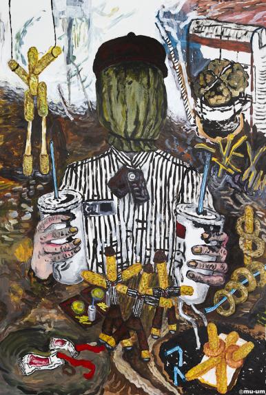 철모 Helmet, 한지 위에 흙, 유화물감, 먹 ink, oil color and soil on paper 164x126cm 2018