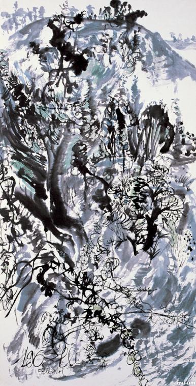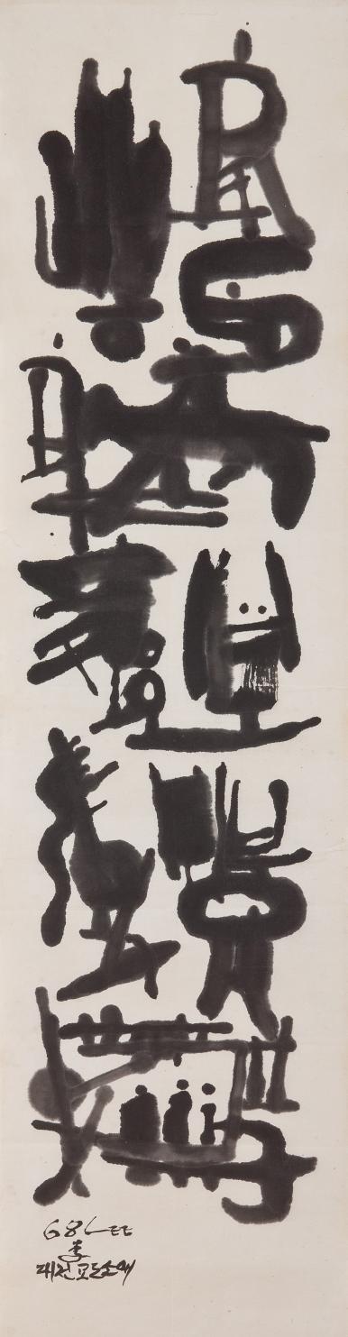 대전풍경, 한지에 수묵담채, 126x65cm, 1968, 이응노미술관