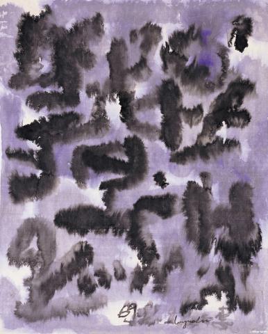 구성, 캔버스에 노끈과 종이 콜라주, 1979, 63.8×50.8cm, 체르누스키 미술관, 파리 시립 아시아 미술관(Musee Cernuschi, Asian Arts Museum of Paris) 소장