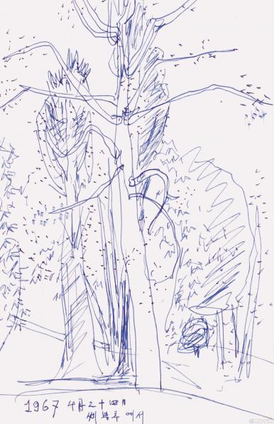 김환기 생가풍경, 종이에 수채, 27x11cm, 년도미상, 신안군청